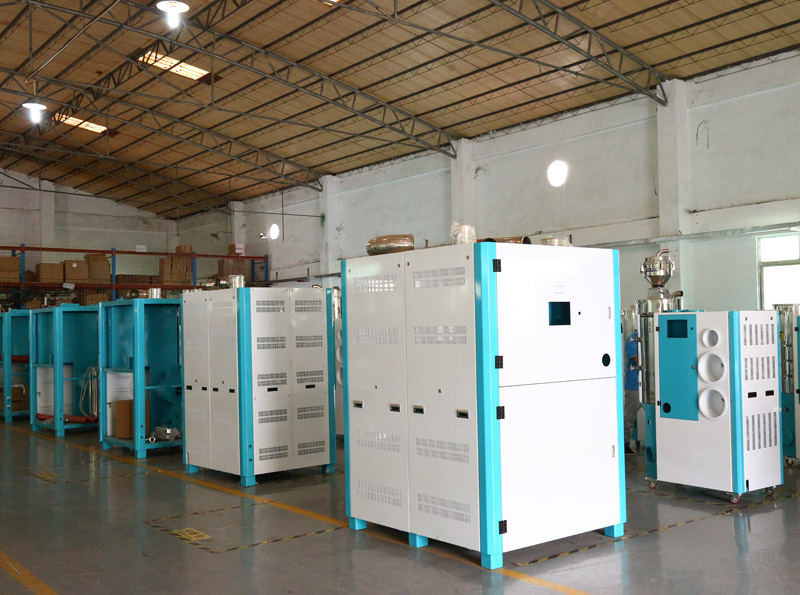 中央集中供料系統的作業原理是選用真空傳送方法,再通過會集的管路體系將塑料質料從儲料罐運送到中心除濕枯燥體系,再將枯燥后的質料運送到每臺注塑機中。